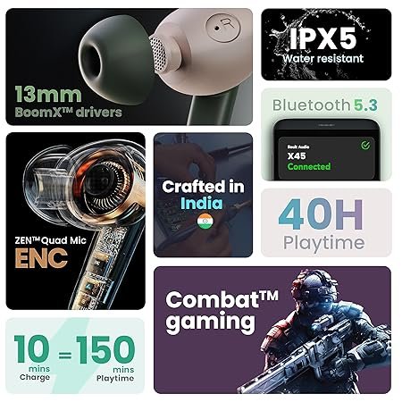 The Boult X45 (also branded under GOBOULT) are true wireless stereo (TWS) earbuds designed for both gaming and everyday listening. They combine bass-heavy sound, long battery life, and ultra-low latency at a very affordable price point.