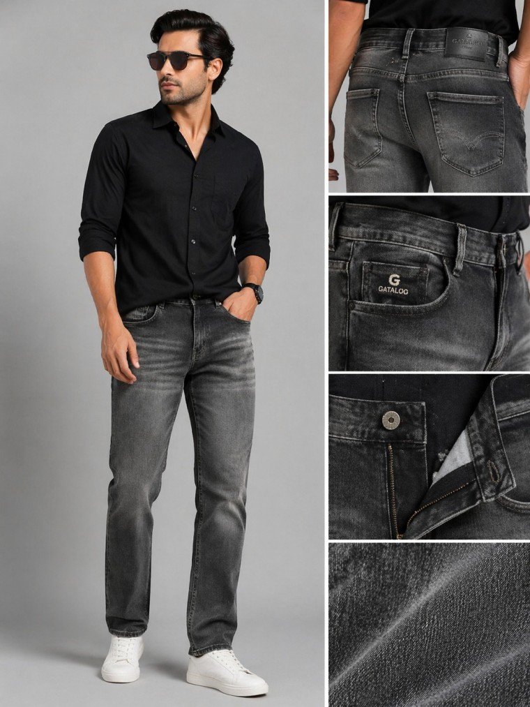 Men’s Charcoal Black Washed Denim Jeans – Regular Fit Stylish Casual Jeans for Men