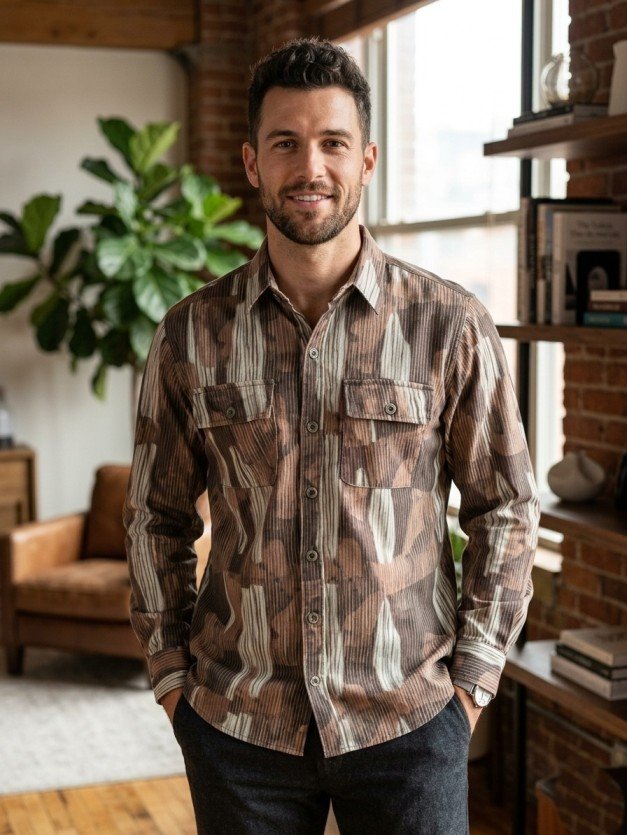 Step up your fashion game with this Men’s Camouflage Printed Casual Shirt, crafted for modern men who love bold and stylish outfits. Featuring a unique camouflage pattern in earthy tones, this shirt gives a rugged yet fashionable look.