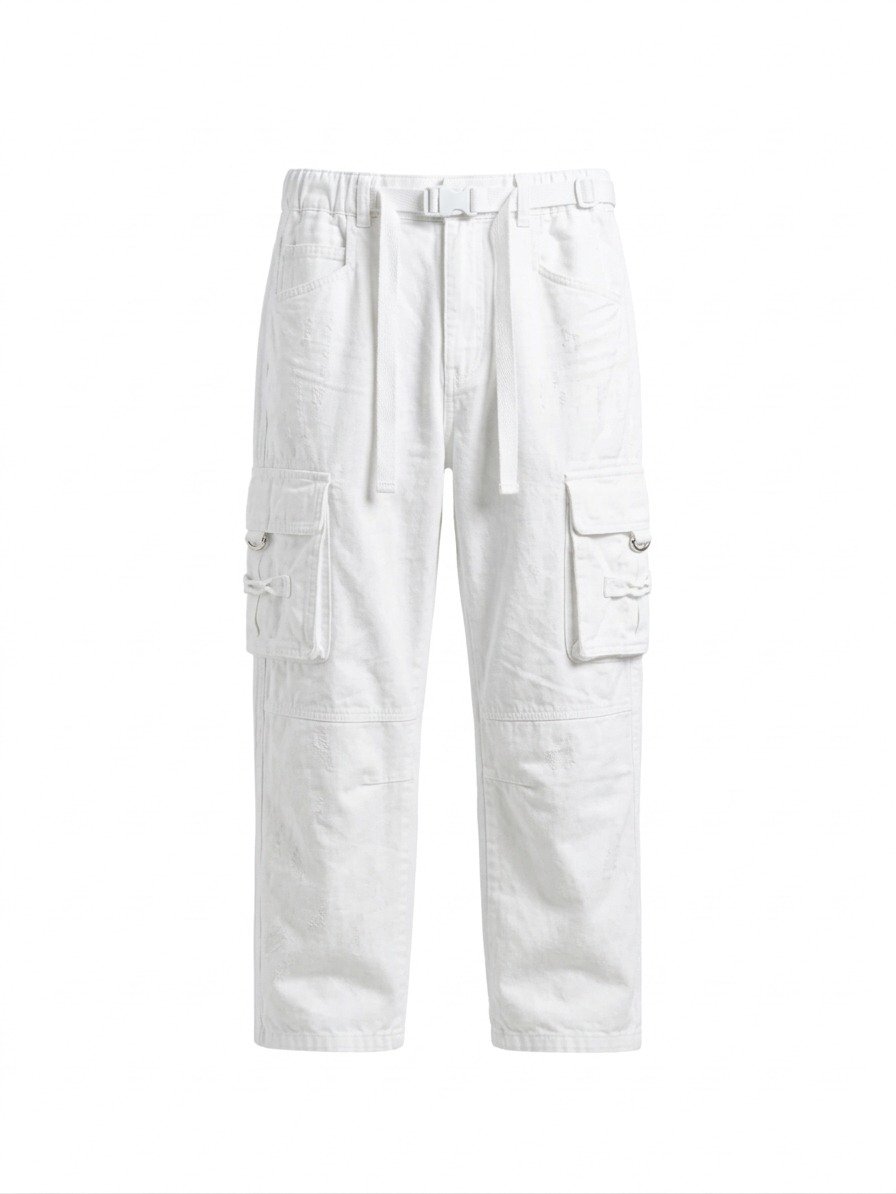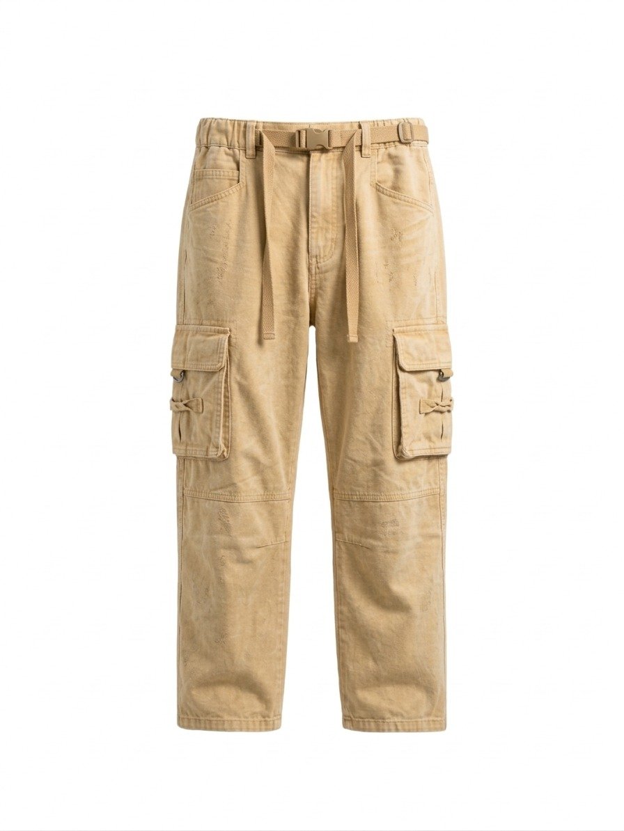 The elastic waistband with adjustable drawstring provides a secure and flexible fit, while the multiple cargo pockets add both functionality and a rugged, trendy look.