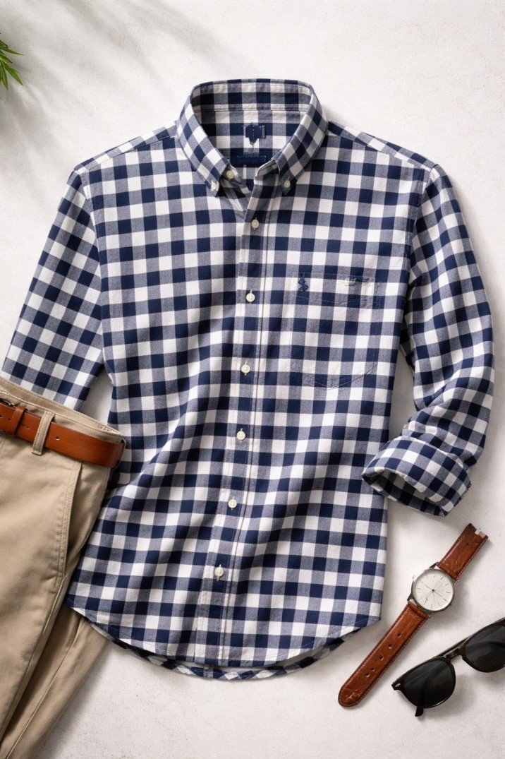 Upgrade your everyday style with this premium Men’s Navy Blue & White Checkered Shirt, designed for comfort and modern fashion. Crafted from high-quality breathable cotton fabric, this shirt offers a soft feel and all-day comfort, making it ideal for casual outings, office wear, and weekend looks.