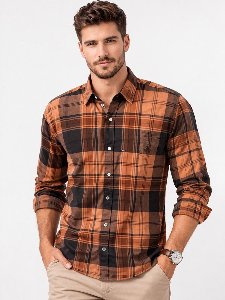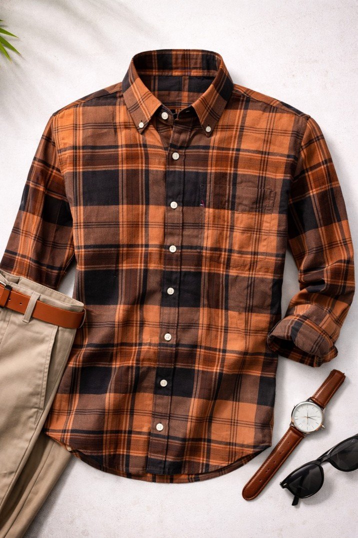 The classic check pattern in earthy tones gives a trendy and rugged look, making it perfect for casual outings, office wear, college, or weekend styling. The full sleeves with buttoned cuffs and front button closure provide a clean and polished finish.