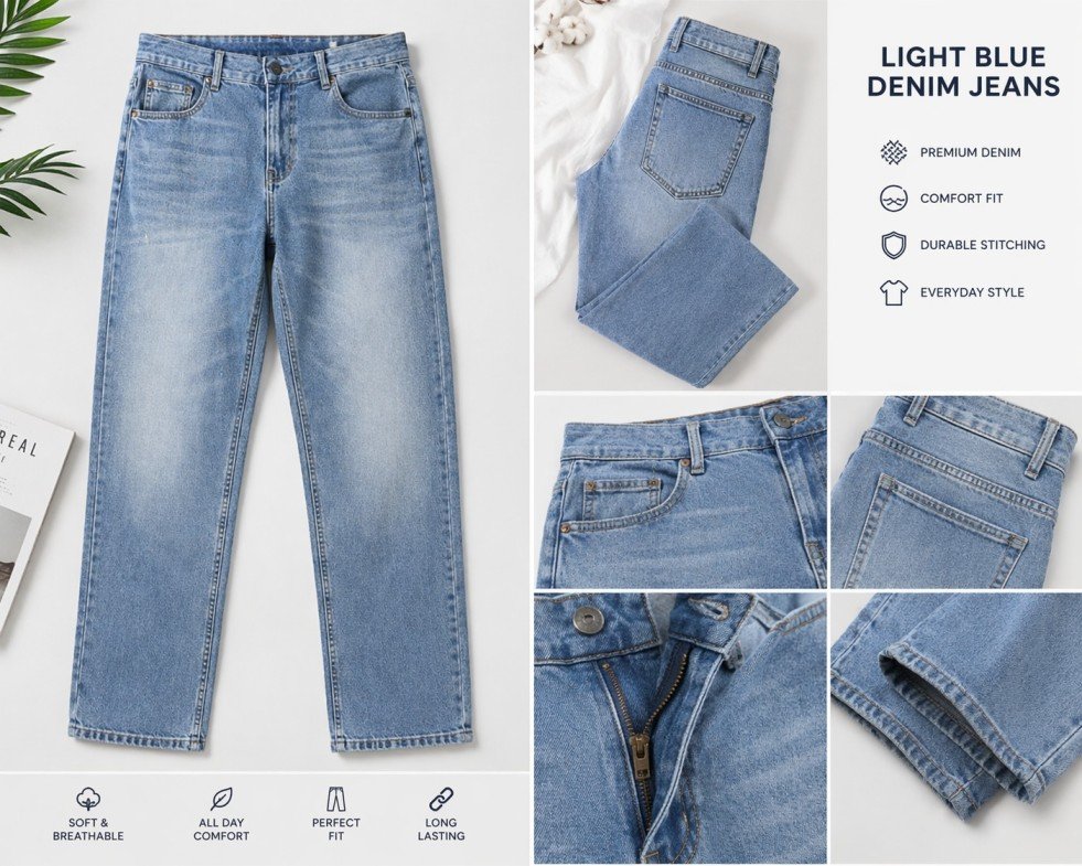 Be the first to review “Men’s Light Blue Straight Fit Denim Jeans – Premium Washed Casual Everyday Wear”