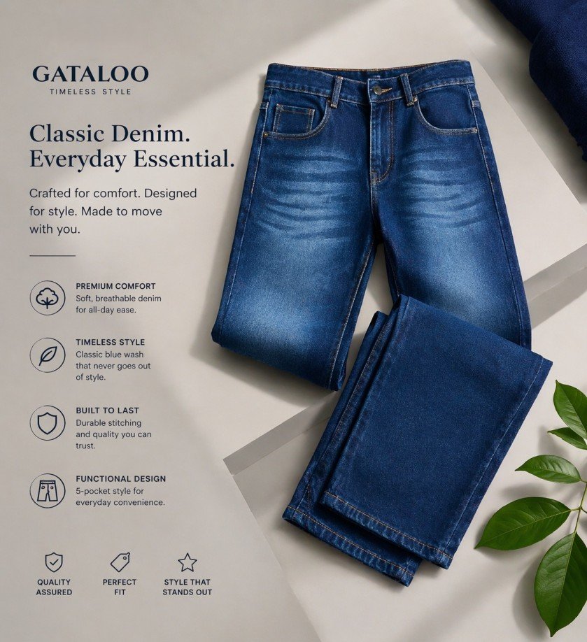 These jeans feature a classic 5-pocket design, strong stitching, and a comfortable waistband for all-day wear. The breathable fabric ensures maximum comfort in every season. Pair it with t-shirts, shirts, or sweaters to create versatile looks effortlessly.