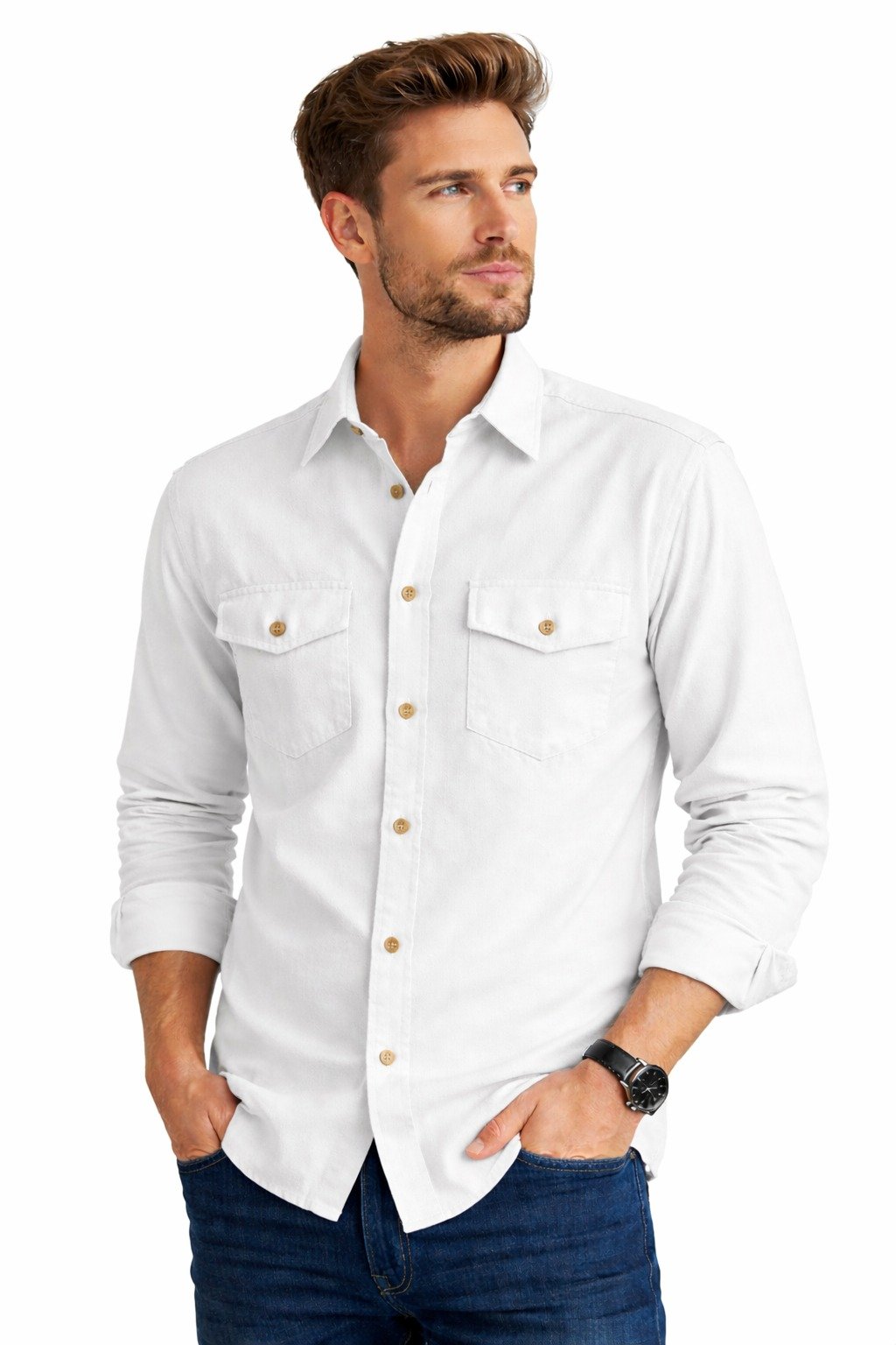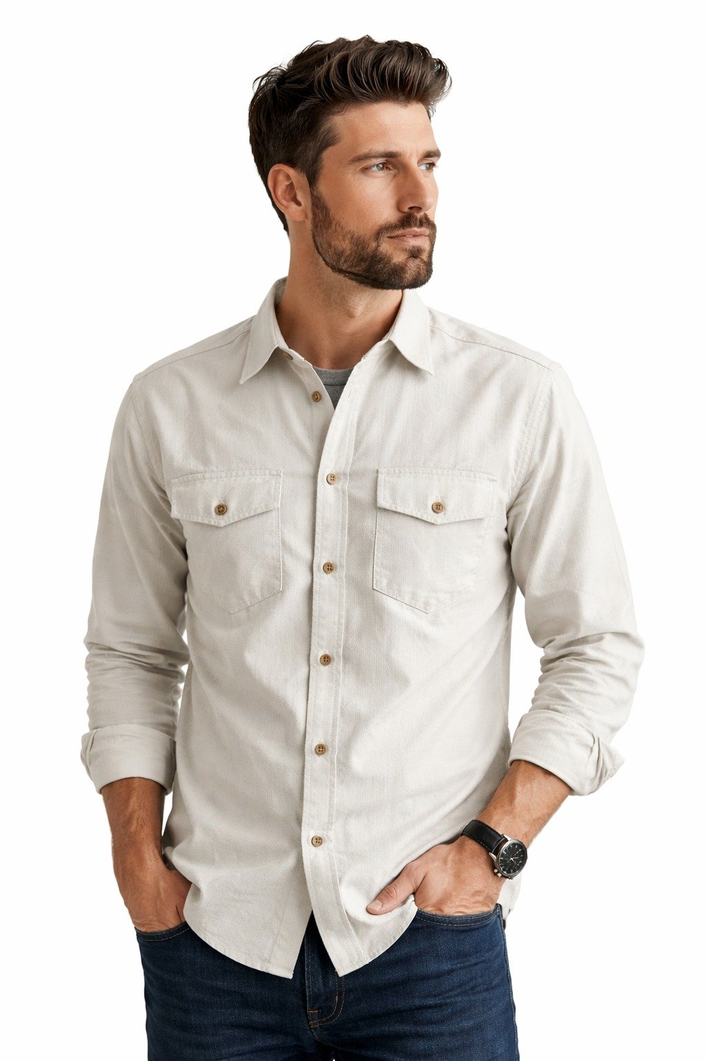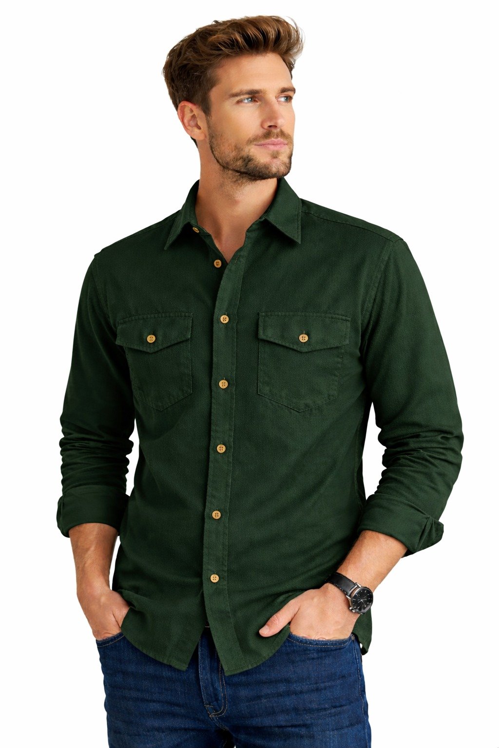 This shirt features a classic collar, full sleeves, and dual front flap pockets, adding both style and functionality. The durable stitching and premium buttons enhance its long-lasting wear, making it an ideal choice for daily use, office wear, travel, or casual outings.