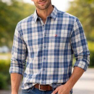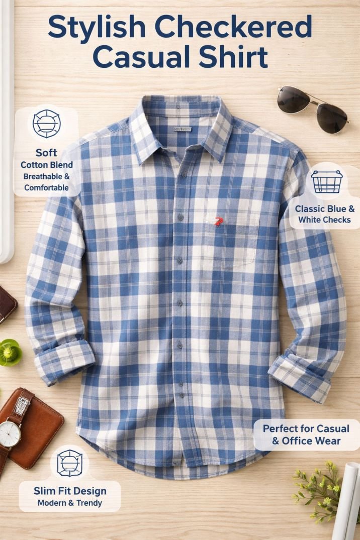 Be the first to review “Men’s Stylish Checkered Casual Shirt – Slim Fit Cotton Blend Full Sleeve Shirt for Men | Trendy Blue White Check Shirt”