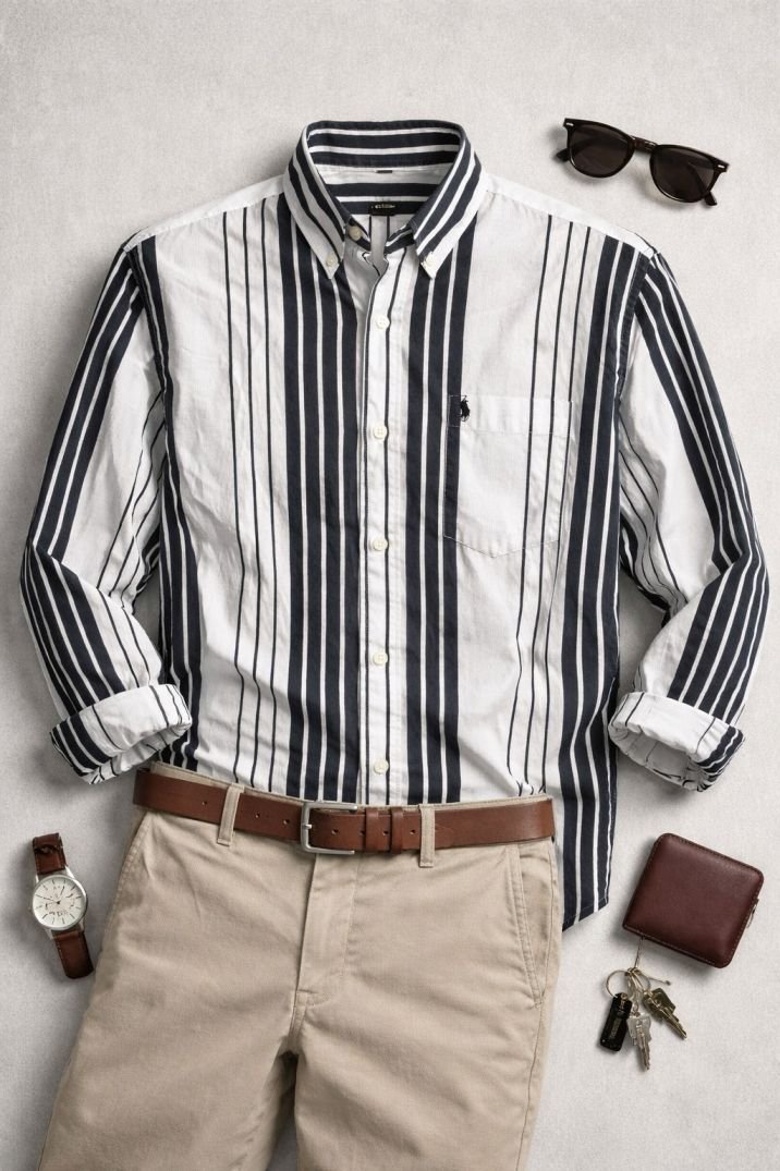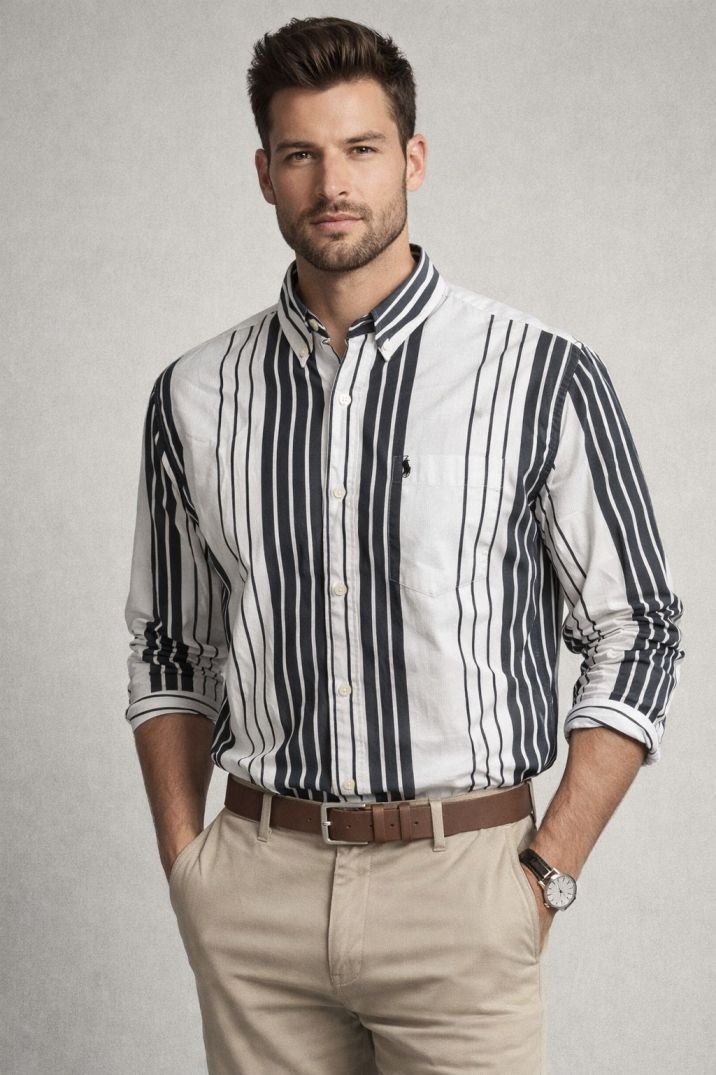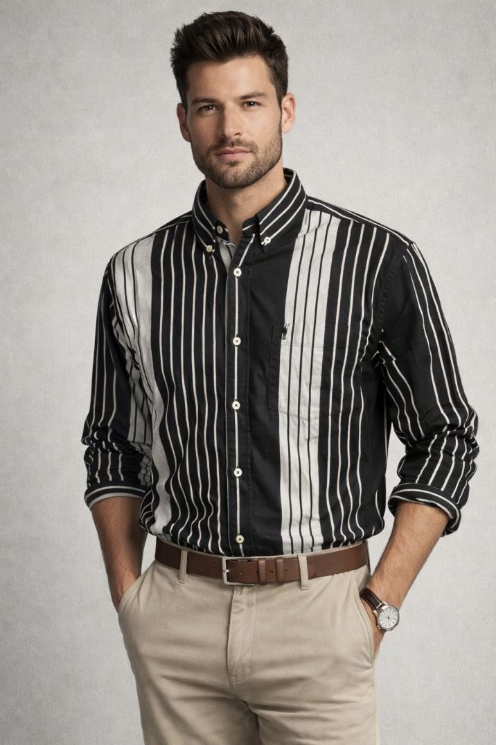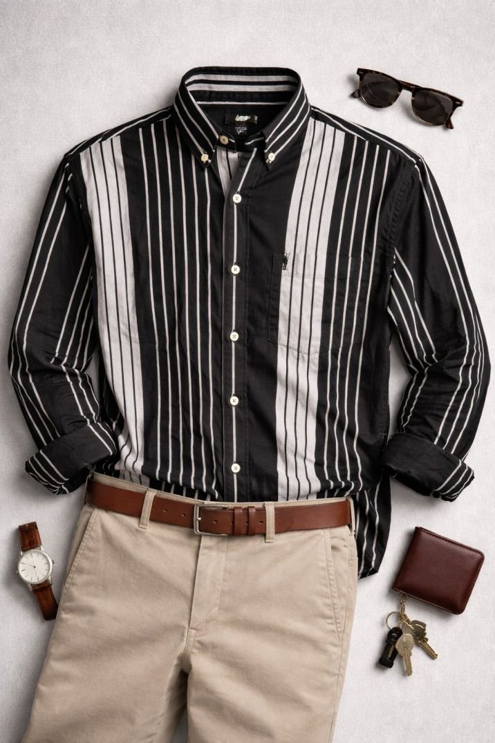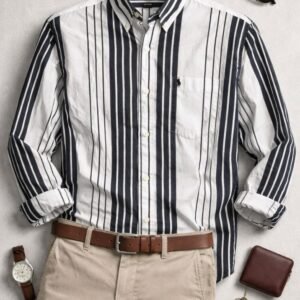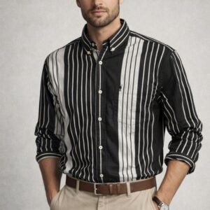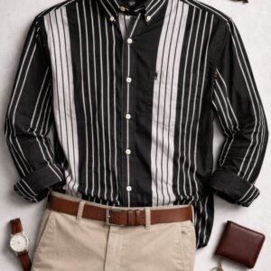 Upgrade your wardrobe with this premium men’s vertical striped shirt, designed for modern style and all-day comfort. Crafted from a high-quality cotton blend fabric, this shirt offers a soft feel, breathable texture, and long-lasting durability.