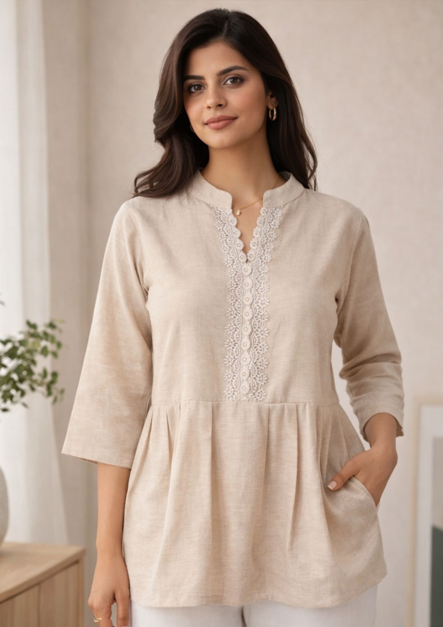 Upgrade your ethnic wardrobe with this elegant embroidered women kurti top, designed for a perfect blend of traditional style and modern comfort. Featuring beautiful front embroidery with a stylish V-neck design, this kurti adds a graceful and classy look to your outfit.