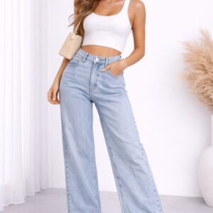 The high-waist design enhances your natural shape while offering a secure and flattering fit. The wide-leg silhouette ensures a relaxed feel and trendy appearance, making these jeans perfect for casual wear, college, outings, or travel.