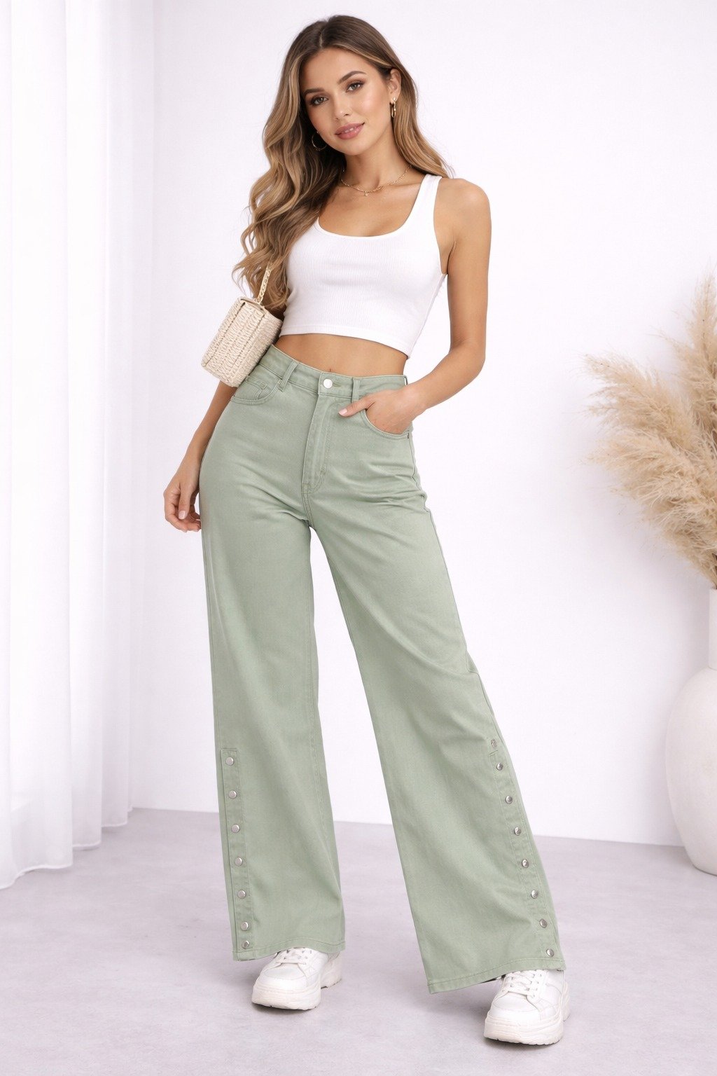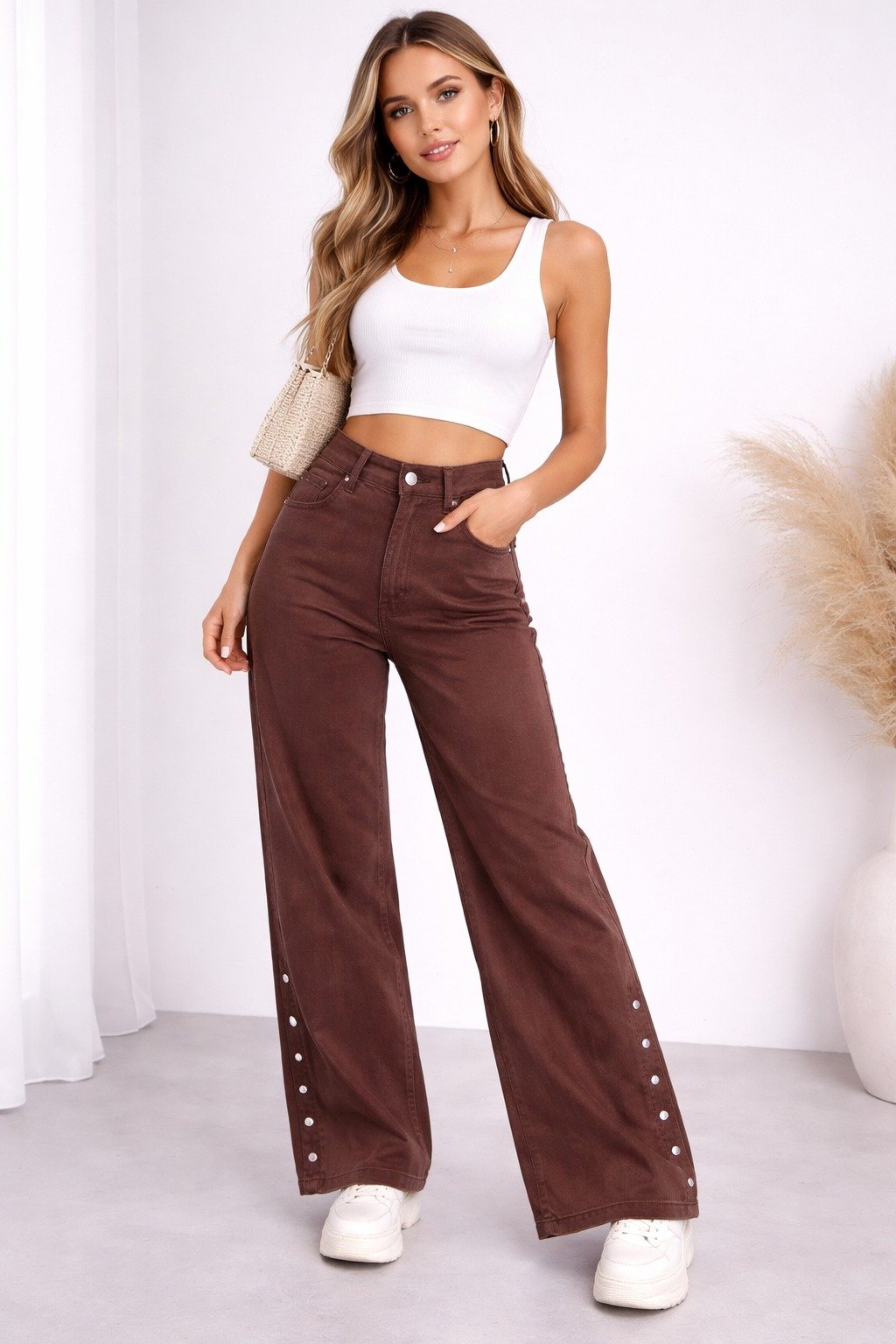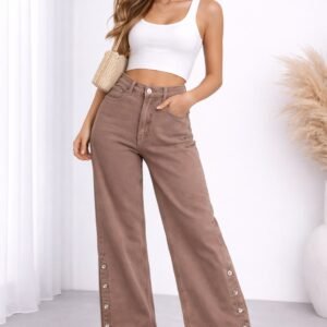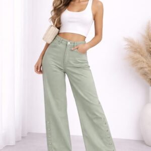 Crafted from premium quality denim fabric, these jeans are soft, breathable, and durable for everyday wear. The wide-leg design delivers a relaxed and modern look, while the side button detailing adds a unique fashion-forward touch that sets you apart.