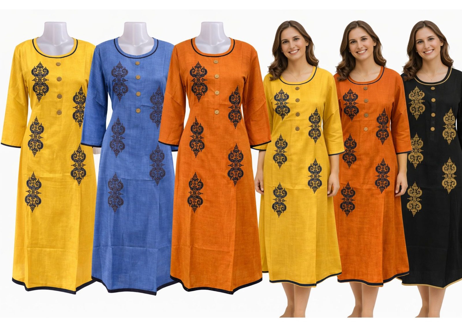 Upgrade your everyday ethnic style with this Women’s Printed Kurti with Button Detail, designed to combine comfort with modern elegance. Available in stunning color options like Yellow, Blue, Dark Orange, and Black, this kurti is perfect for adding versatility to your wardrobe.