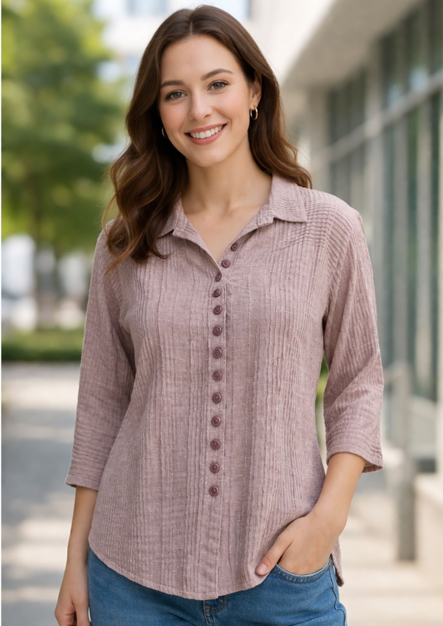 Upgrade your everyday fashion with this Women’s Textured Button-Down Top, designed to offer a perfect blend of comfort and sophistication. Available in multiple color options including Pink, Blue, Green, and Brown, this top is a versatile addition to your wardrobe.