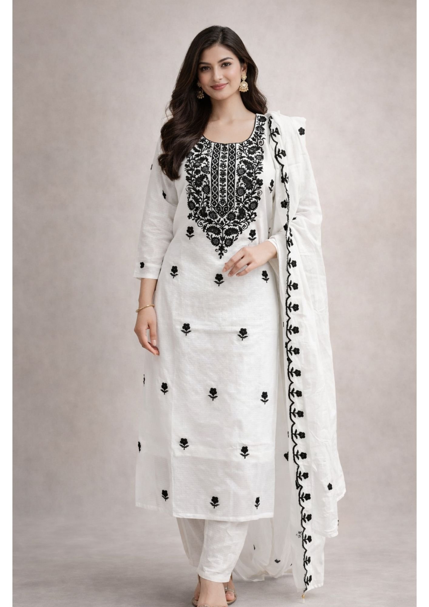 Step into elegance with this stunning women’s white embroidered kurti set, designed to give you a perfect blend of tradition and modern style. Made from soft and breathable cotton fabric, this outfit ensures maximum comfort throughout the day.