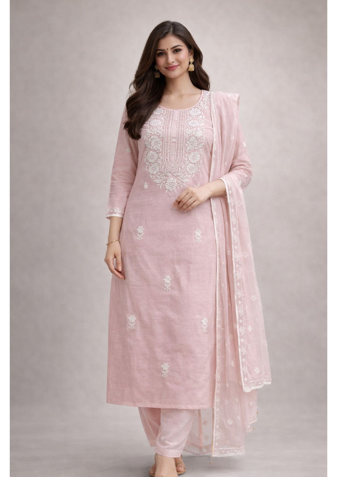 This set comes with a beautifully coordinated dupatta adorned with matching embroidery, completing your ethnic look effortlessly. Whether you’re attending a casual gathering, office meeting, or small festive event, this outfit is a perfect choice.